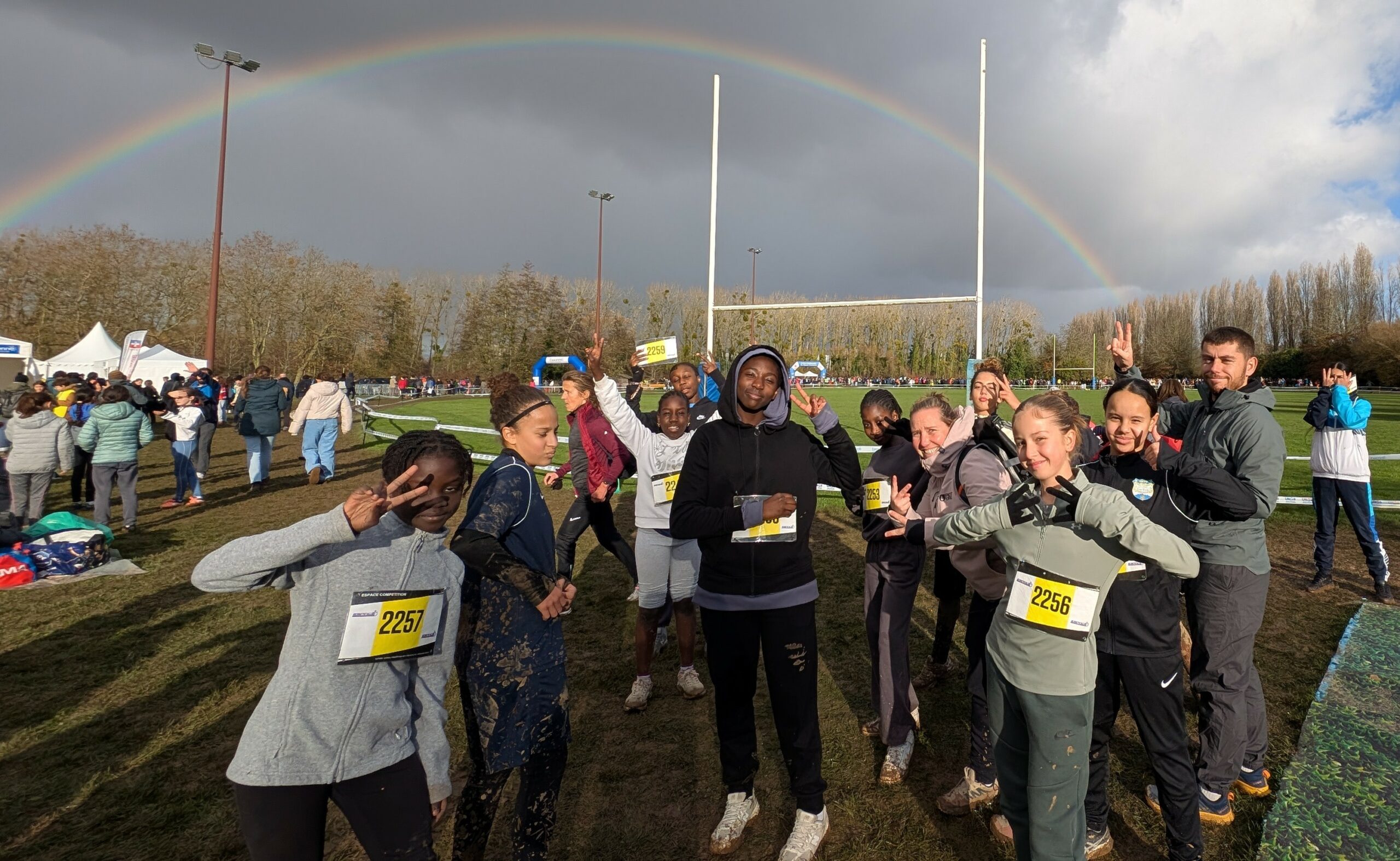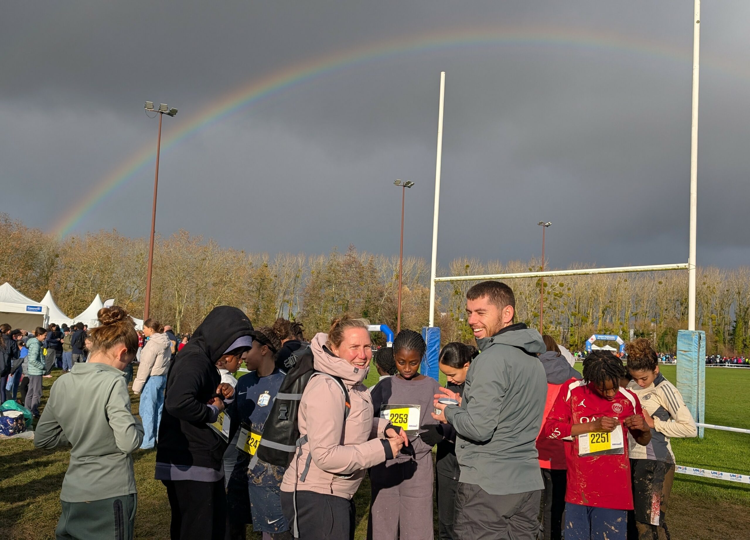 31 élèves du collège ont participé au cross départemental le Mercredi 19 Novembre qui se déroulait à Palaiseau et réunissait l’ensemble des lycées et collèges du département. Malgré quelques rares apparitions du soleil, nos élèves ont dû affronter la pluie et la boue. Tous les élèves, sans exception, se sont donnés à fond pour représenter le collège. Merci à eux d’avoir pris part à cette aventure ! Nous espérons qu’ils en garderont un bon souvenir. Les résultats seront affichés au collège et les élèves pourront les consulter.