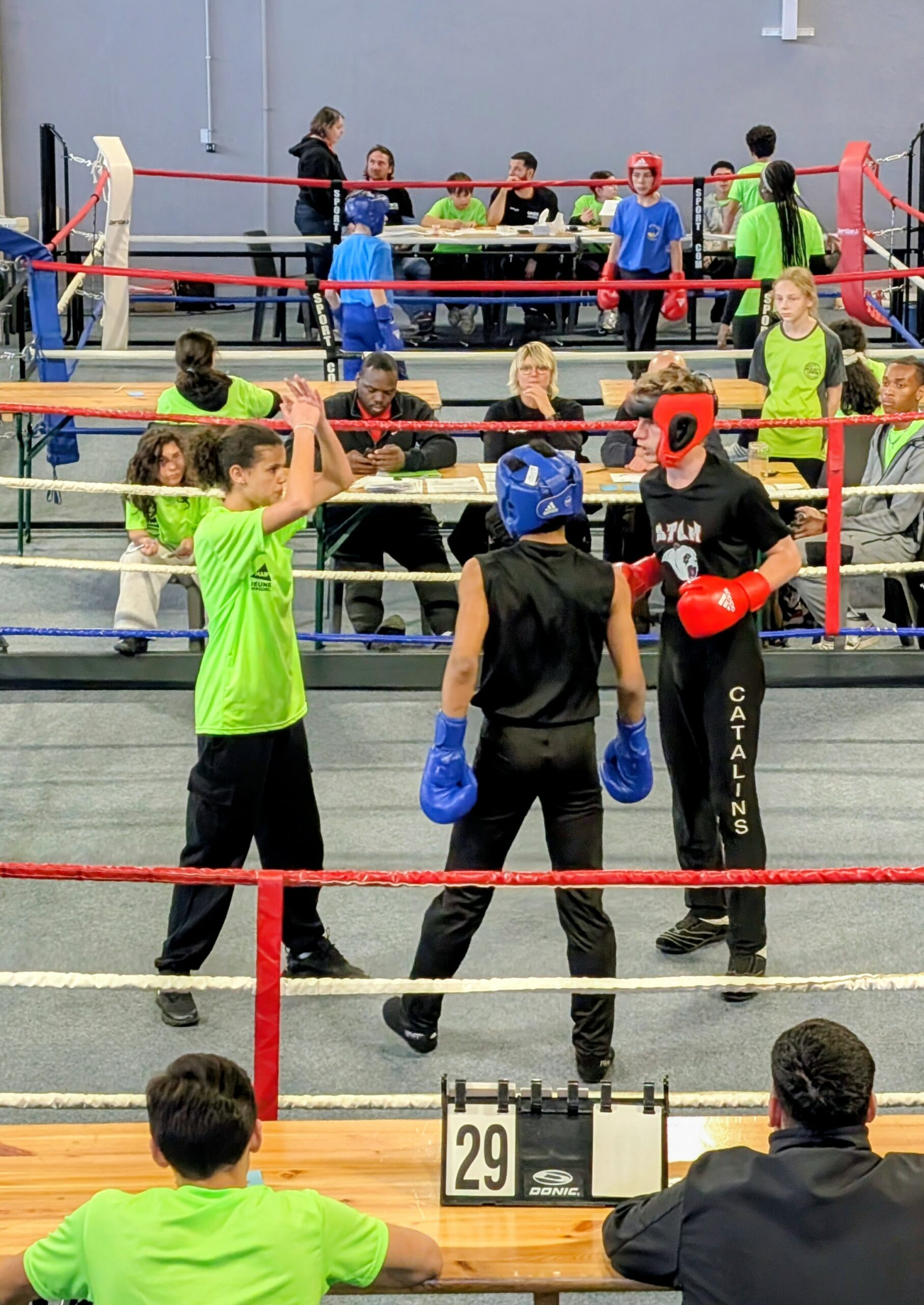 Entre assauts techniques et dépassement de soi, nos élèves qui ont débuté la boxe il y a seulement 7 mois, ont fait preuve d’un fair-play exemplaire et d’une détermination sans faille sur le ring. Cette expérience nationale restera gravée dans les mémoires, tant pour l’expérience engrangée que pour les moments de cohésion partagés face aux meilleurs collèges de France ainsi qu’avec leurs 2 professeurs d’EPS présents sur place pour les encourager. L’équipe termine à une honorable 18ème place nationale.